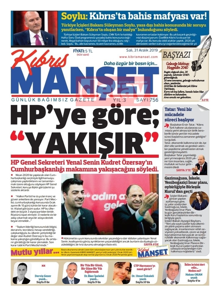 GAZETE MANŞETLERİ 31 ARALIK 2019 SALI