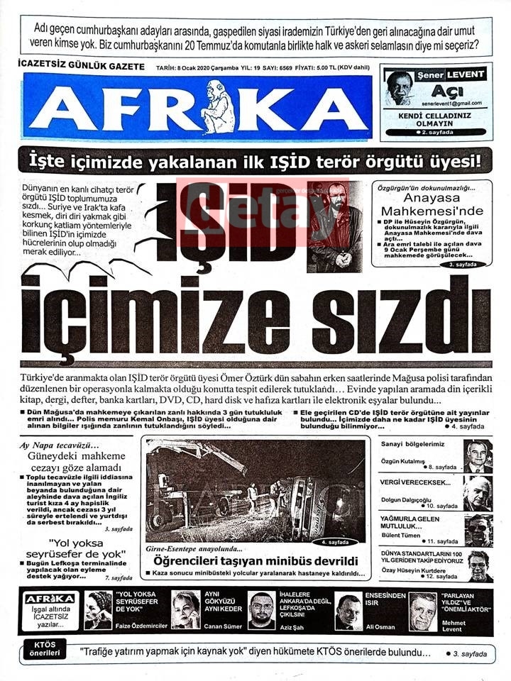GAZETE MANŞETLERİ 8 OCAK 2020 ÇARŞAMBA