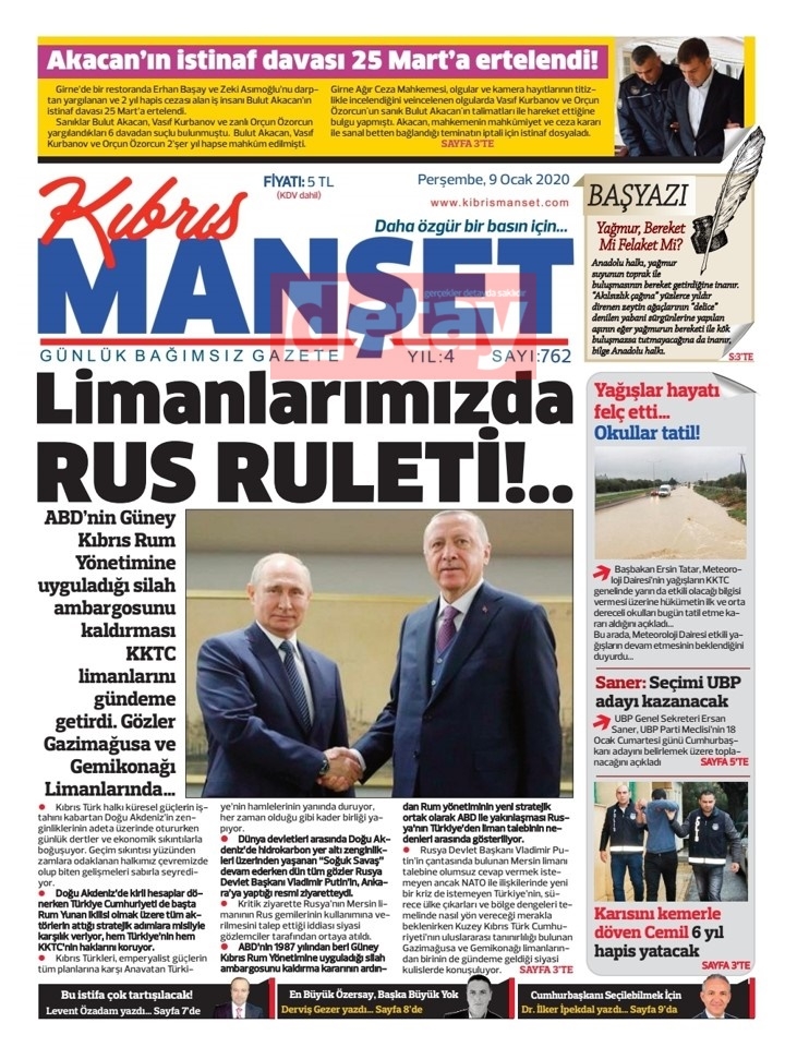 GAZETE MANŞETLERİ 9 OCAK 2020 PERŞEMBE