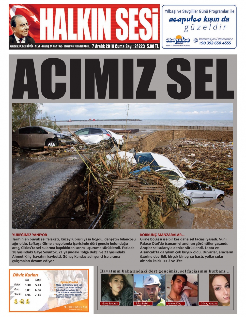 Kuzey Kıbrıs'ta yaşanan sel felaketi sonrası Gazeteler siyahlara büründü