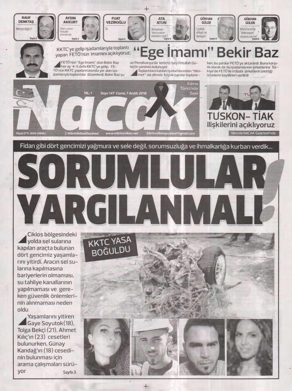 Kuzey Kıbrıs'ta yaşanan sel felaketi sonrası Gazeteler siyahlara büründü