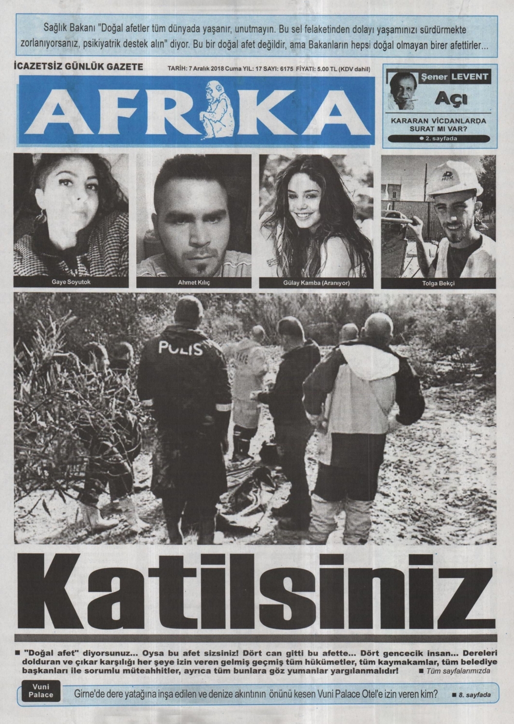 Kuzey Kıbrıs'ta yaşanan sel felaketi sonrası Gazeteler siyahlara büründü