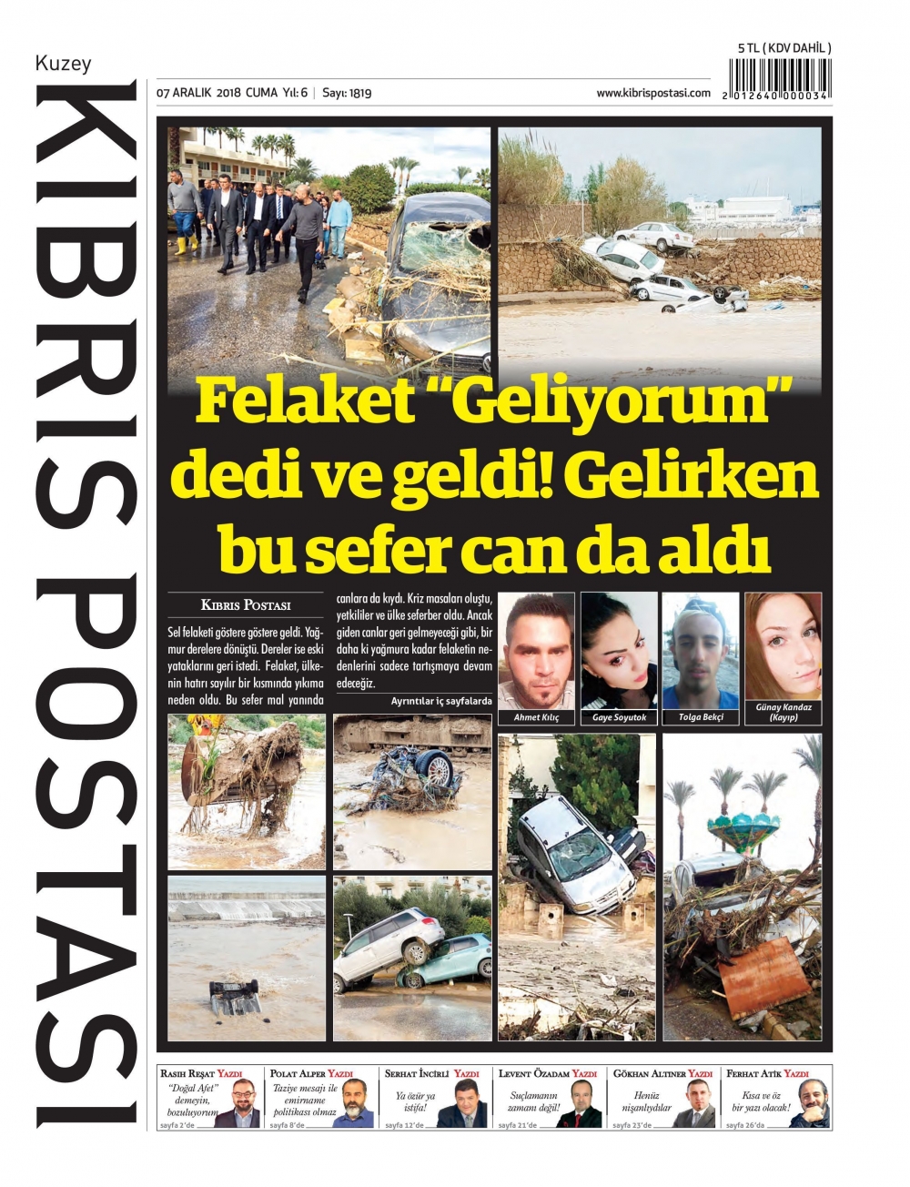 Kuzey Kıbrıs'ta yaşanan sel felaketi sonrası Gazeteler siyahlara büründü