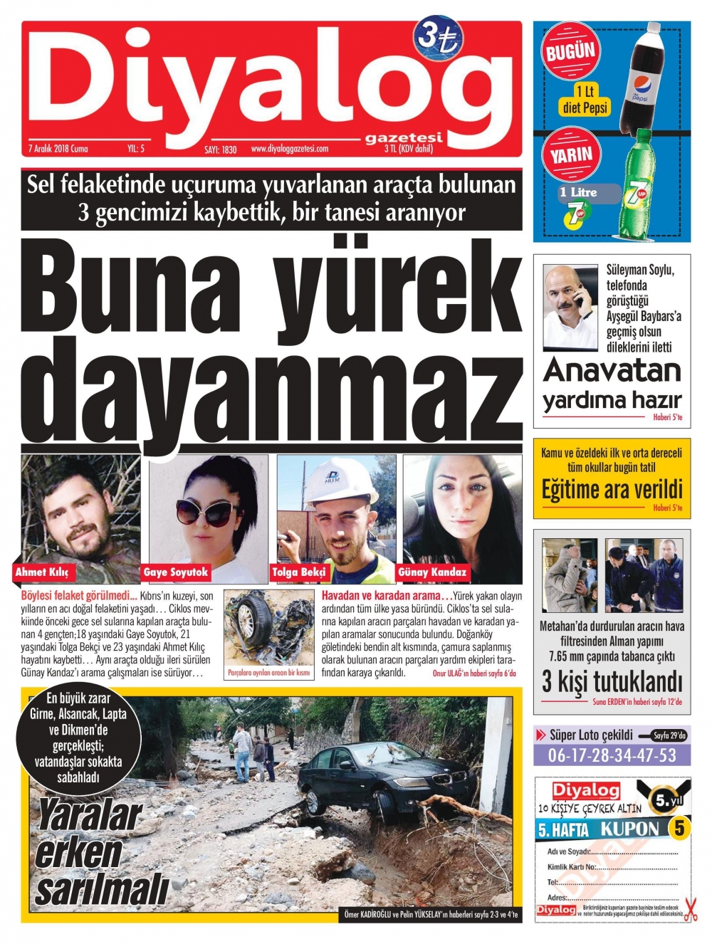 Kuzey Kıbrıs'ta yaşanan sel felaketi sonrası Gazeteler siyahlara büründü