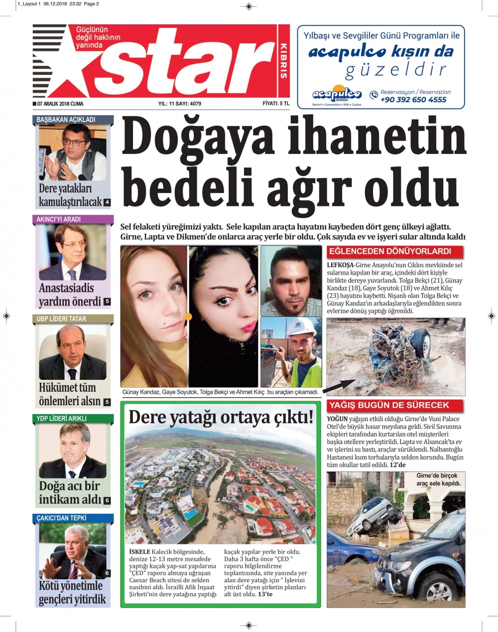 Kuzey Kıbrıs'ta yaşanan sel felaketi sonrası Gazeteler siyahlara büründü