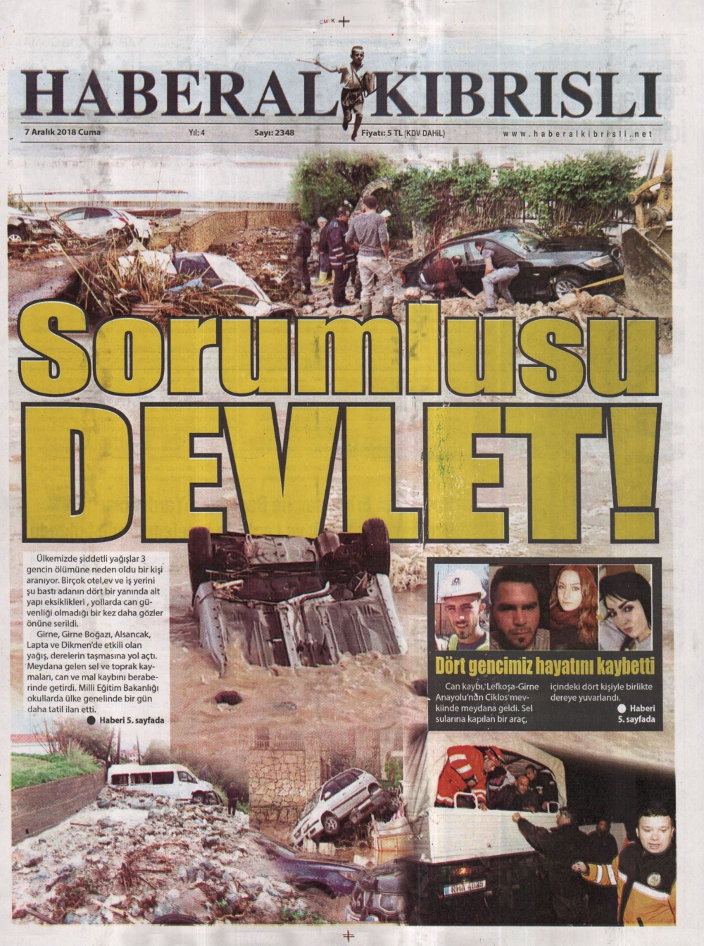 Kuzey Kıbrıs'ta yaşanan sel felaketi sonrası Gazeteler siyahlara büründü
