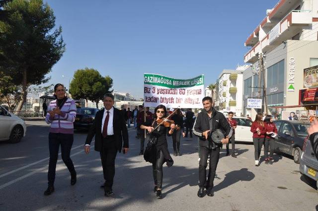 GML öğretmen ve öğrencileri bugün bu çerçevede Gazimağusa'da, DAÜ önünden başlayıp Salamis Yolunda kortej yürüyüşü yaptı.