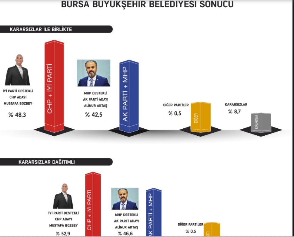 Ankara, İstanbul, Bursa, Adana, Manisa, Hatay ve Balıkesir genelinde yerel ve politik konuları belirlemek üzere 16- 17 Mart 2019 tarihlerinde araştırmaya göre Ankara'da Mansur Yavaş öne geçerken İstanbul'da Ekrem İmamoğlu Binnali Yıldırım'a yaklaşıyor