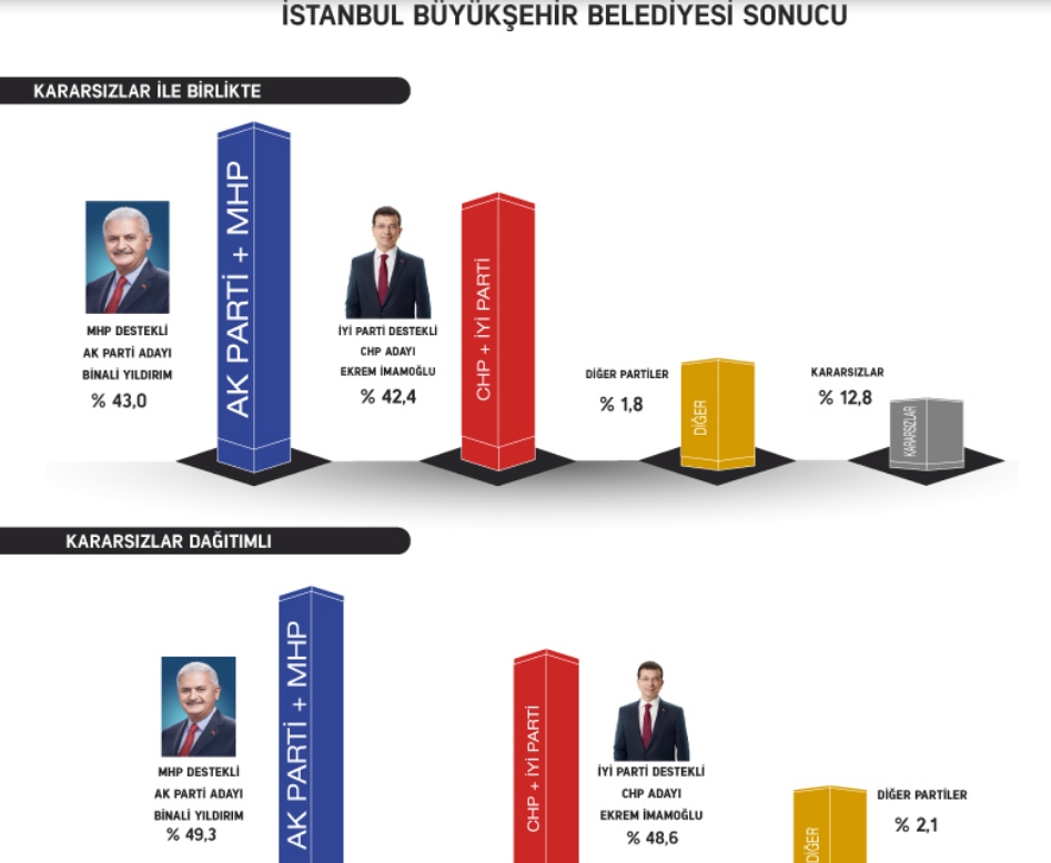 Ankara, İstanbul, Bursa, Adana, Manisa, Hatay ve Balıkesir genelinde yerel ve politik konuları belirlemek üzere 16- 17 Mart 2019 tarihlerinde araştırmaya göre Ankara'da Mansur Yavaş öne geçerken İstanbul'da Ekrem İmamoğlu Binnali Yıldırım'a yaklaşıyor