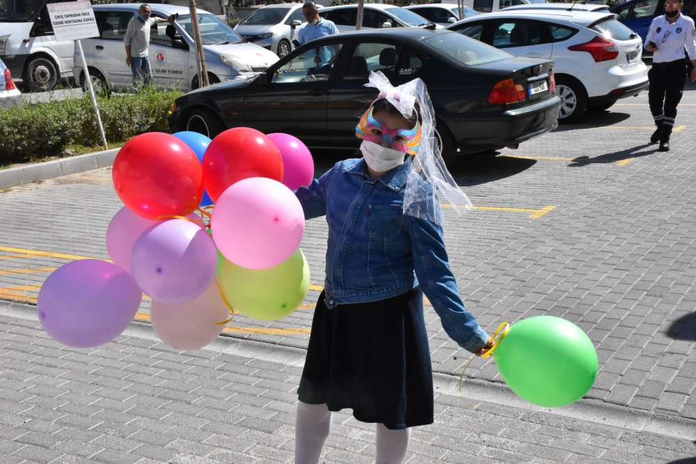 Covid 19 salgını nedeniyle geçtiğimiz yıl olduğu gibi bu yıl da 23 Nisan'larını doyasıya yaşayamayarak evlerinde geçiren çocukları bir nebze gülümsetmek için Sosyal İşler Şubesi personeli ve Girne Belediyesi Çocuk Meclisi'nden çocuklar, neşeli kostümler giyerek, renkli şekerler ve renkli maskeler dağıttı.