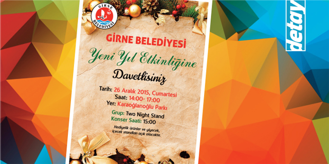Girne Belediyesi, 26 Aralık 2015 Cumartesi günü saat 14:00- 17:00 saatleri arasında Karaoğlanoğlu parkında yeni yıl etkinliği düzenliyor.