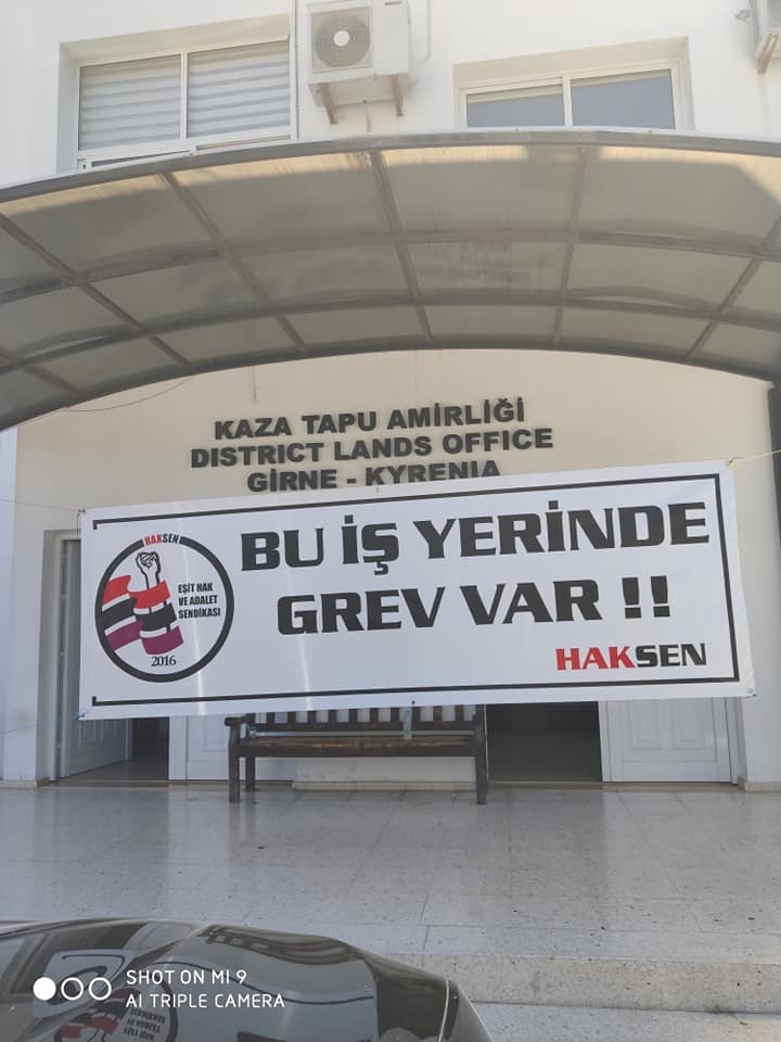 HAKSEN, Girne Tapu Dairesi çalışanı 3 kişinin tutuklanması üzerine uyarı grevi gerçekleştirdikleri açıkladı