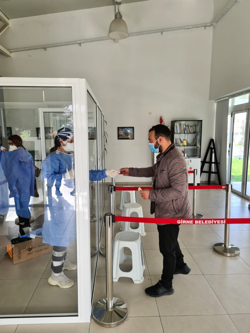 Dr. Fazıl Küçük Bulvarı yeni liman yolundaki Girne Belediyesi’ne ait Leymosun Kültür Evinde ise aynı çalışma sistemi ile kayıtlar yapılmakta ve Sağlık Bakanlığı personelleri de PCR testlerini büyük bir titizlikte yapmaktadır. Test çalışmaları haftanın her günü (Cumartesi-Pazar dahil ) saat 8.00 -15.30 arasında yapılmaktadır.