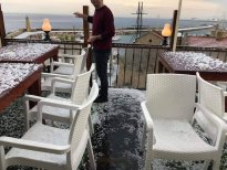 Bugün gündüz saatlerinde Girne'de yağan dolu hayatı olumsuz etkiledi. Oldukça büyük taneleri olan dolu yağışı kameralara böyle yansıdı