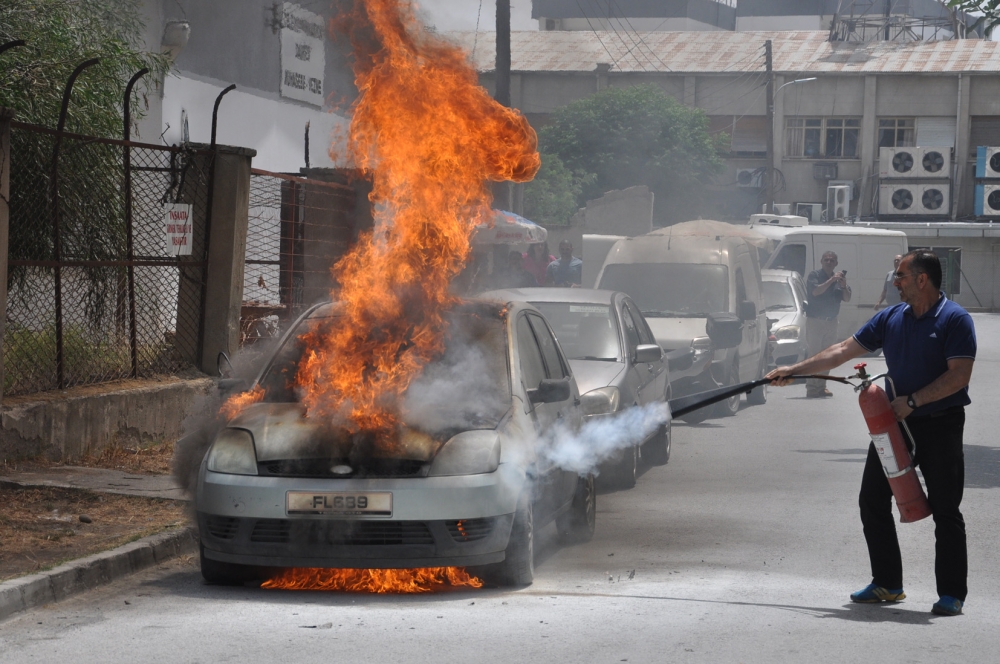 Lefkoşa’da, Telekomünikasyon Dairesi’nin önünde park halinde olan araç alev alarak yandı...