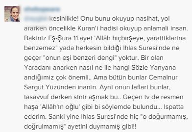 Gülben Ergen'in takipçilerinden bazıları, sanatçının şirk koştuğunu söylerken kimileri de ayetle cevap verip sözlerini düzeltmesi gerektiğini savundu.