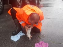 Pendik'te sel sularına kapılan bir sokak kedisini fark eden belediye işçisi, suni teneffüs yaparak onu hayata döndürdü