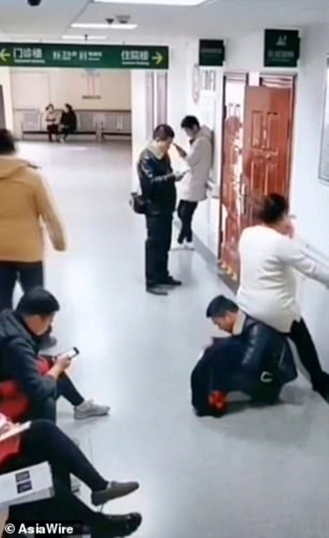 Çin'de bir adam, hastaneye götürdüğü hamile karısına kimse yer vermeyince çaresizlikten yere oturdu ve eşini sırtına oturttu.