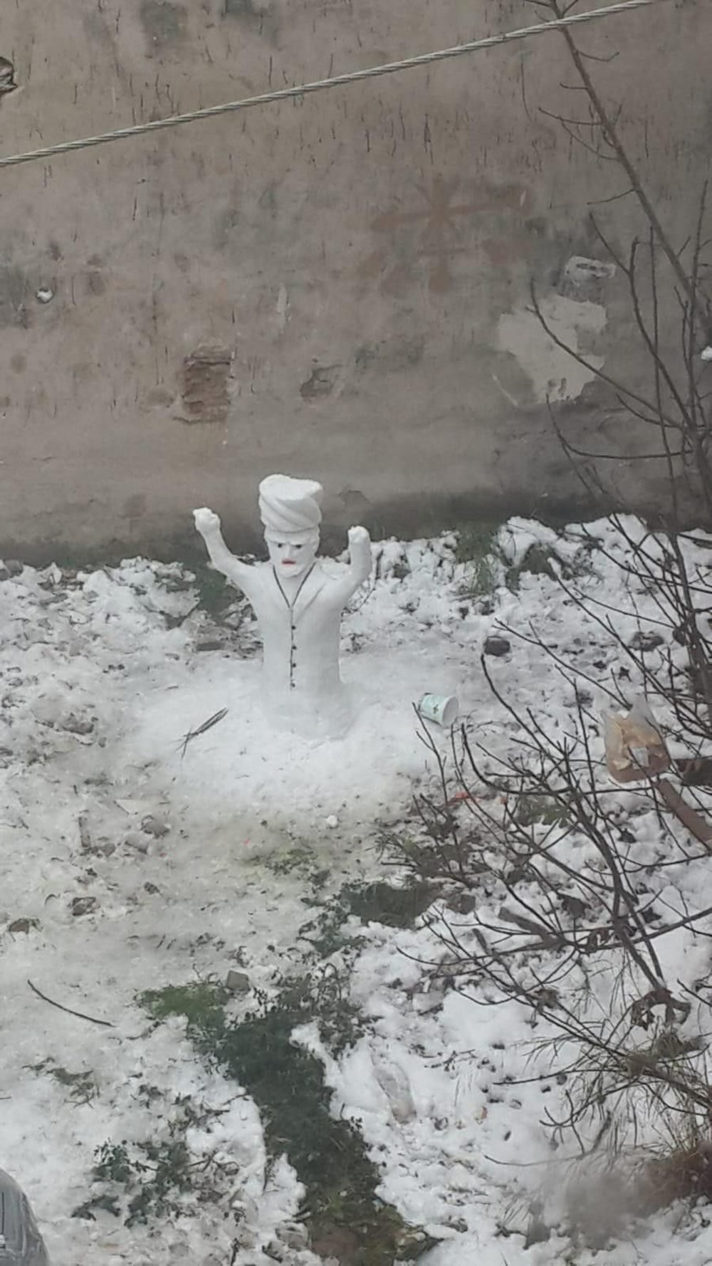 Kimisi yaptığı kardan adamla halay çekti, kimisi salıncağa bindirdi, kimisi imam cübbesi giydirip arkasında safa durdu, bazıları da corona virüse dikkat çekmek için yüzüne maske taktı. Kardan adamlardan çok kardan teyzeler, kardan gelinler dikkat çekti.