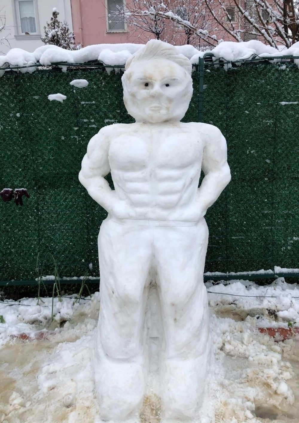 Kimisi yaptığı kardan adamla halay çekti, kimisi salıncağa bindirdi, kimisi imam cübbesi giydirip arkasında safa durdu, bazıları da corona virüse dikkat çekmek için yüzüne maske taktı. Kardan adamlardan çok kardan teyzeler, kardan gelinler dikkat çekti.