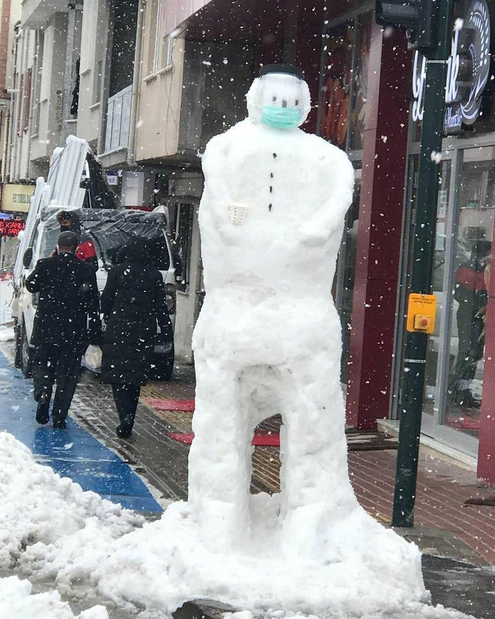 Kimisi yaptığı kardan adamla halay çekti, kimisi salıncağa bindirdi, kimisi imam cübbesi giydirip arkasında safa durdu, bazıları da corona virüse dikkat çekmek için yüzüne maske taktı. Kardan adamlardan çok kardan teyzeler, kardan gelinler dikkat çekti.
