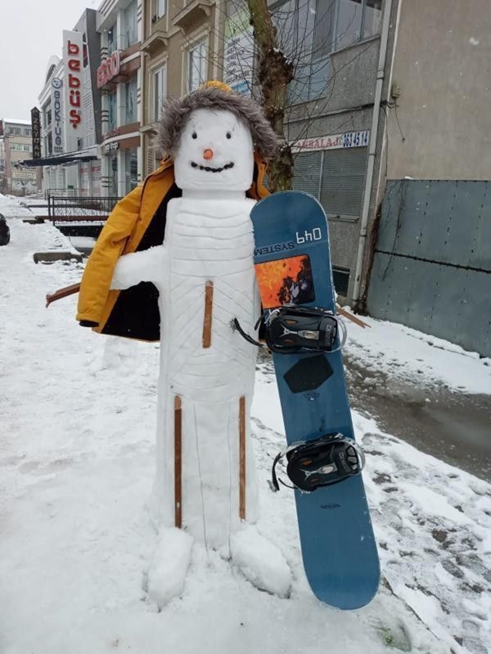 Kimisi yaptığı kardan adamla halay çekti, kimisi salıncağa bindirdi, kimisi imam cübbesi giydirip arkasında safa durdu, bazıları da corona virüse dikkat çekmek için yüzüne maske taktı. Kardan adamlardan çok kardan teyzeler, kardan gelinler dikkat çekti.