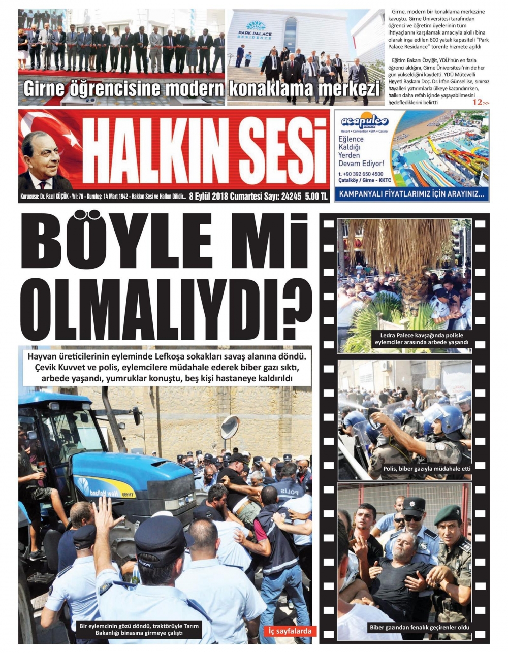Lefkoşa'da hayvancılar eylem yaptı, polisin sıktığı biber gazından etkilenen 5 kişi ambulansla hastaneye kaldırıldı. İşte basın haberi böyle verdi !!!Fotoğraflar: Hüseyin Sayıl/TAK