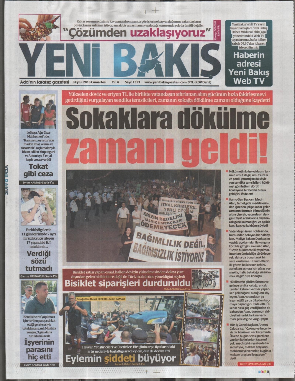 Yeni Bakış Gazetesi haberi "Eylemin şiddeti büyüyor" şeklinde verdi.
