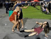 Binlerce İngiliz öğrenci, Newcastle Hipodromu'nda düzenlenen at yarışı etkinliğinde alkolün dozunu kaçırdı. Kimi eğlenceden kendini yerlere attı, kimi fazla alkolden hastanelik oldu...