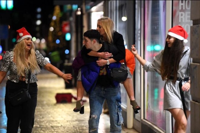 Her Noel zamanı İngiltere'nin dört bir yanında yaşanan ilginç manzaralar bu sene de objektiflere yansıdı. Noel sezonunun başlangıcı olan gecede milyonlarca kişi alkol duvarını aştı...