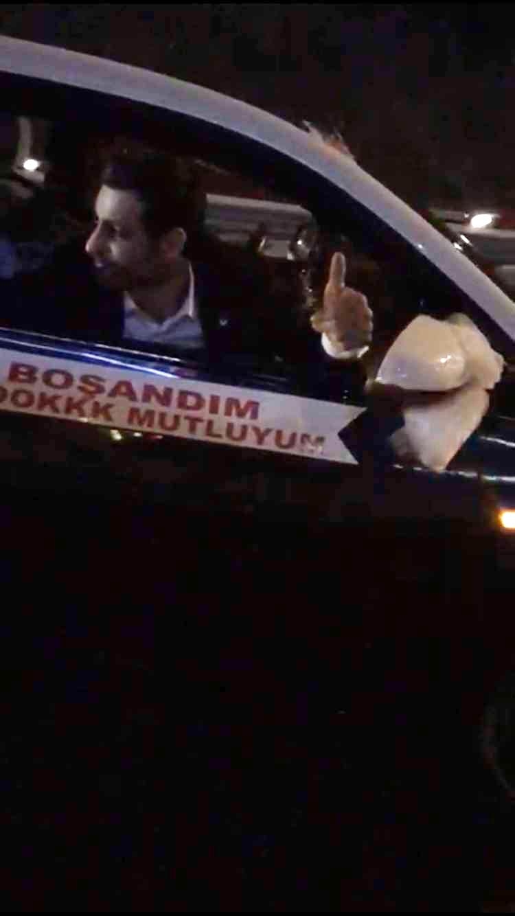İstanbul eşinden boşanan bir kişi, otomobilini gelin arabası gibi süsletip üzerine 'Boşandım çok mutluyum' yazarak konvoy eşliğinde tur attı.