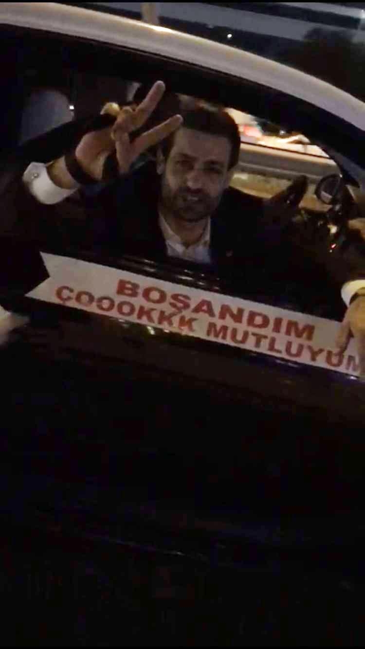 İstanbul eşinden boşanan bir kişi, otomobilini gelin arabası gibi süsletip üzerine 'Boşandım çok mutluyum' yazarak konvoy eşliğinde tur attı.