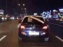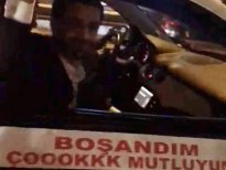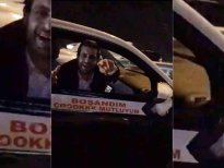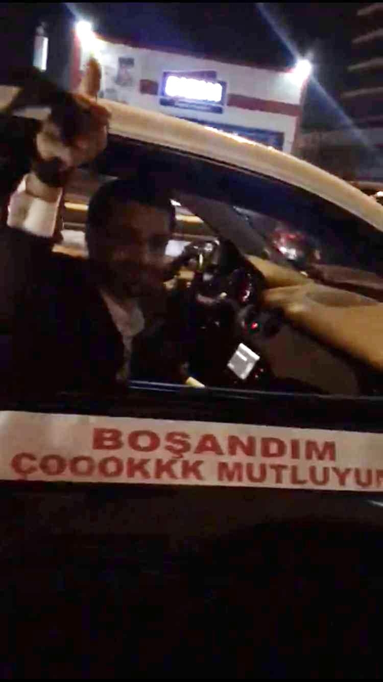 İstanbul eşinden boşanan bir kişi, otomobilini gelin arabası gibi süsletip üzerine 'Boşandım çok mutluyum' yazarak konvoy eşliğinde tur attı.
