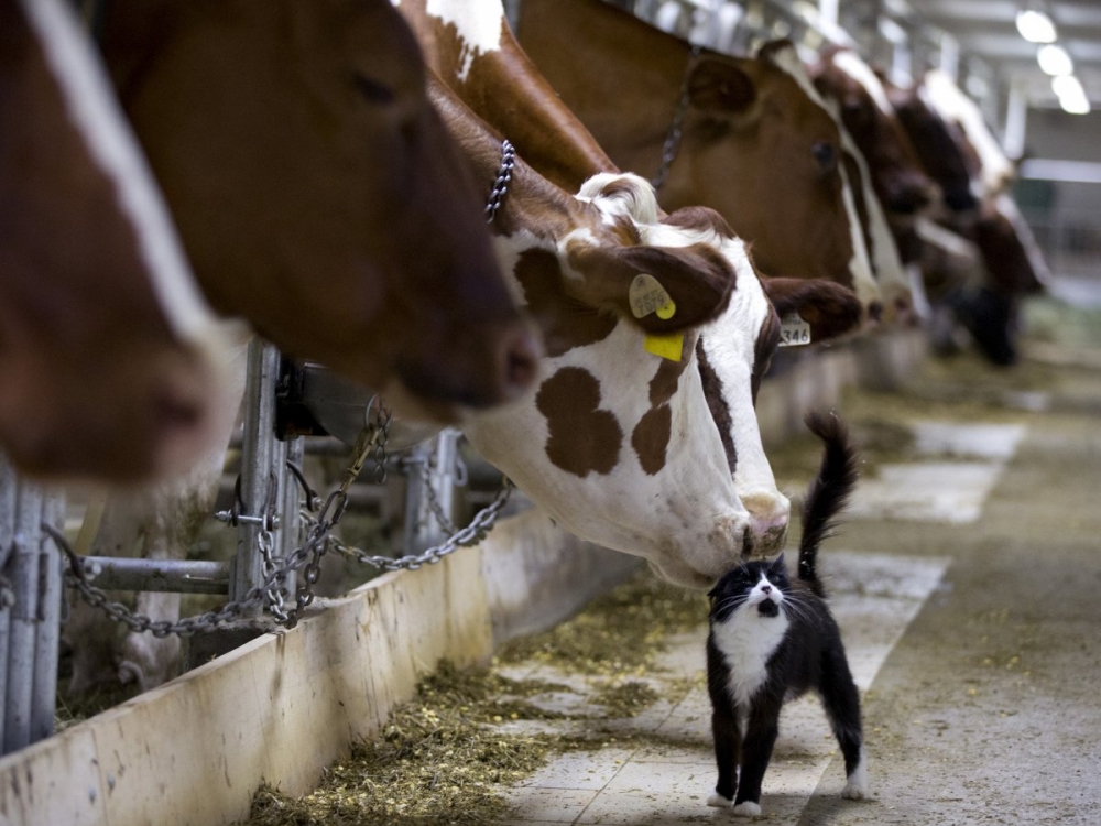 Quebec'de bir çiftlikte hayvanların dostluğu.