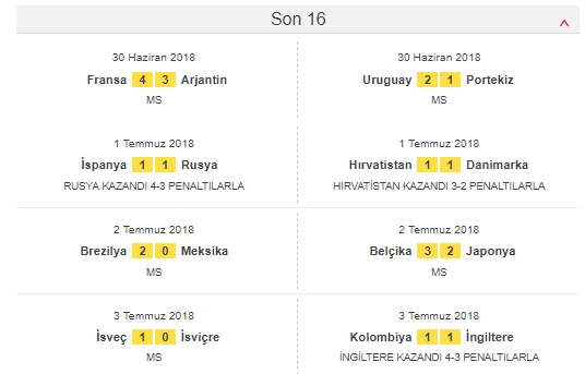 İşte Dünya Kupası'na damga vuran maçların fikstür ve sonuçları