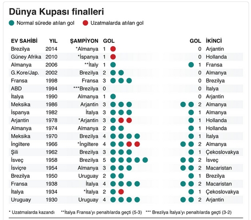 İşte Dünya Kupası'na damga vuran maçların fikstür ve sonuçları