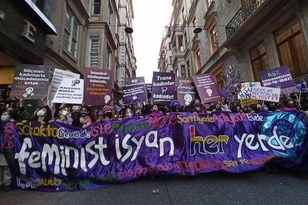 8 Mart Dünya Emekçi Kadınlar Günü dolayısıyla kadınlar Taksim’de 19’uncu kez Feminist Gece Yürüyüşü için toplandı.