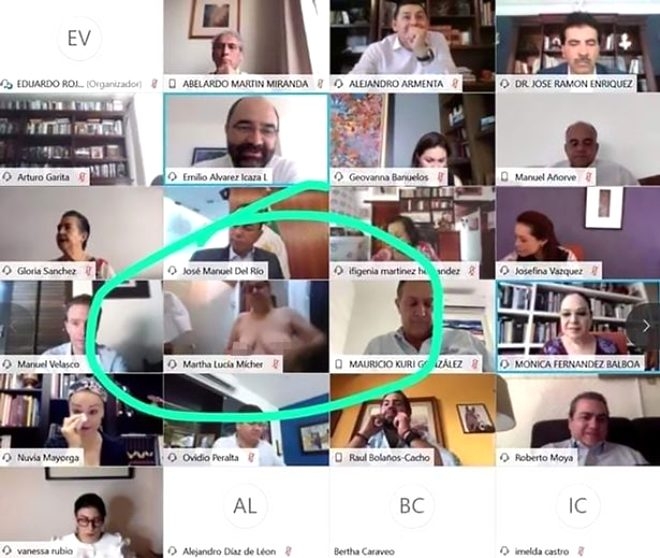 66 yaşındaki Meksikalı senatör Martha Lucia Micher, 26 Mayıs tarihinde diğer senatör ve gazeteciler ile beraber Zoom üzerinden Kovid-19 ile ilgili yapılan toplantı esnasında, kameranın kapalı olduğunu düşünüp elbiselerini değiştirdi.