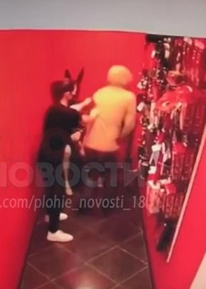 Rusya'da cinsel ilişki ürünleri satan mağazaya giren adam, önce müşteri gibi ürünlere baktı.