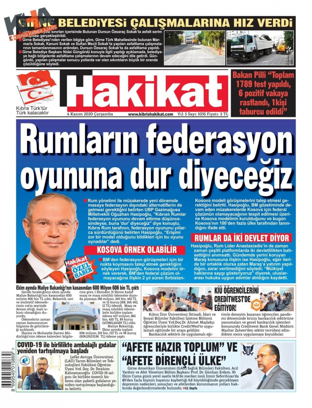 KKTC Gazeteleri Bugün Ne Yazdı? 04 Kasım 2020 Çarşamba