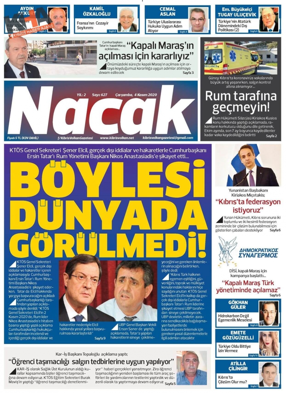 KKTC Gazeteleri Bugün Ne Yazdı? 04 Kasım 2020 Çarşamba