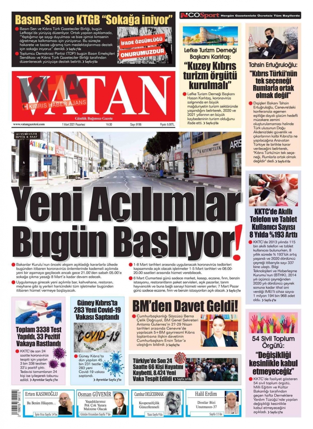 KKTC gazeteleri bugün ne yazdı (1 Mart 2019)