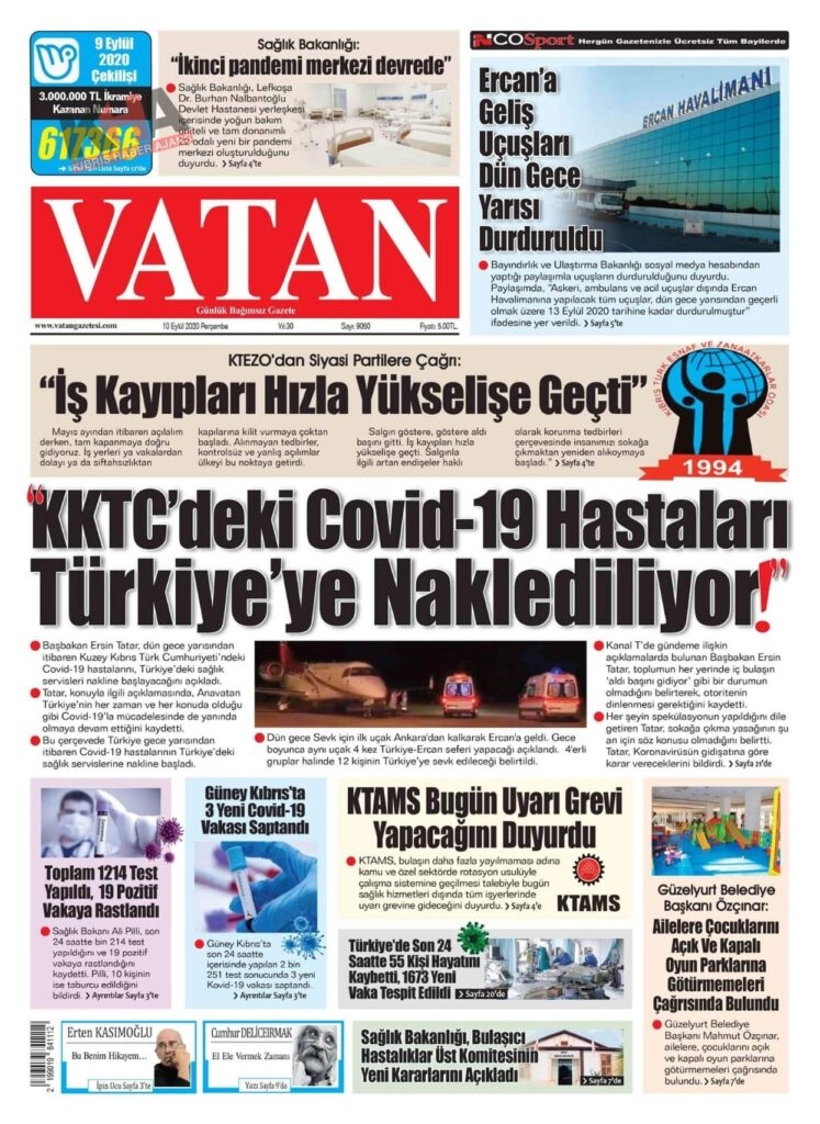KKTC Gazeteleri Bugün Ne Yazdı? 10 Eylül 2020 Perşembe
