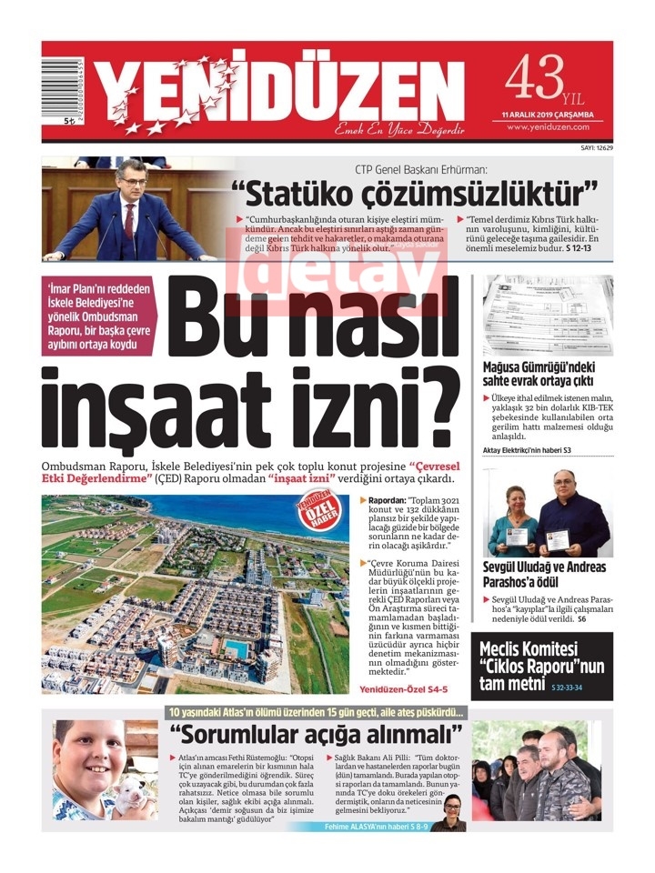 KKTC gazeteleri bugün ne yazdı (11 Aralık 2019)