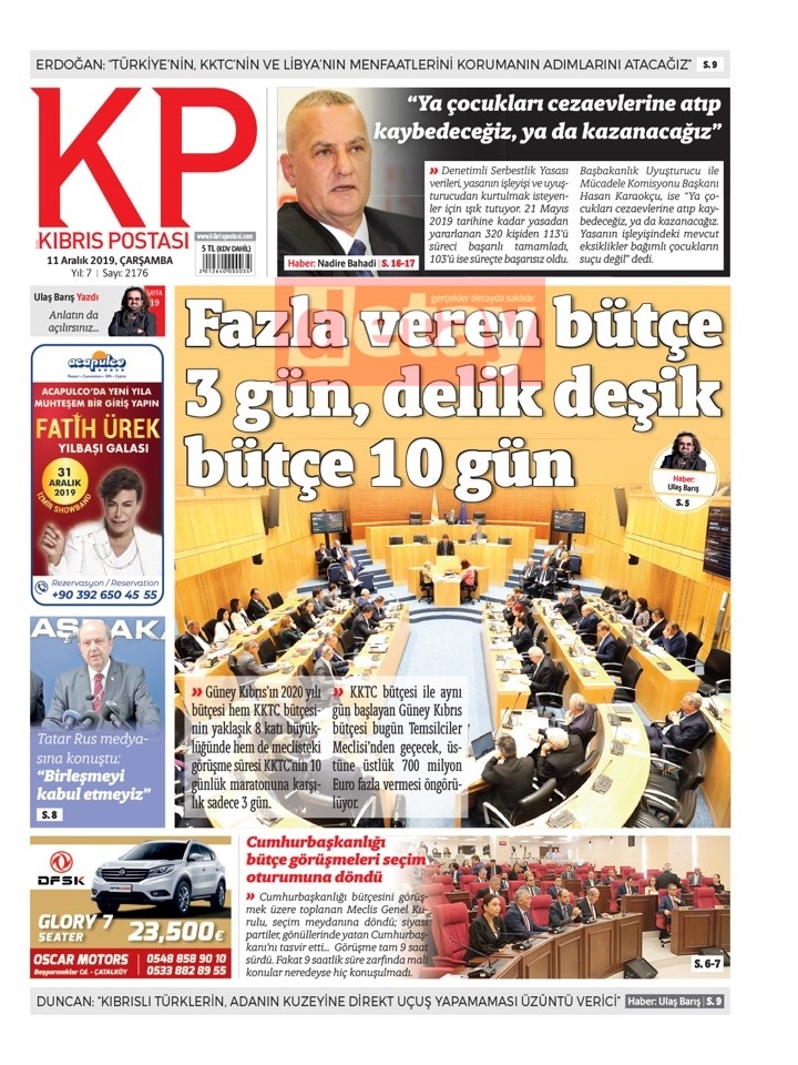 KKTC gazeteleri bugün ne yazdı (11 Aralık 2019)