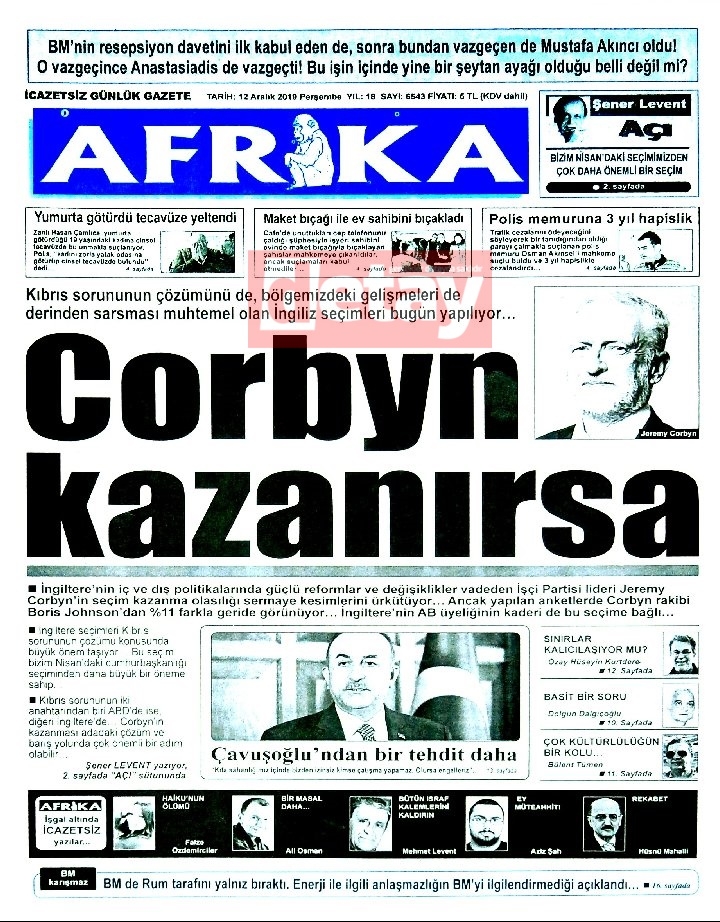 KKTC gazeteleri bugün ne yazdı (12 Aralık 2019)