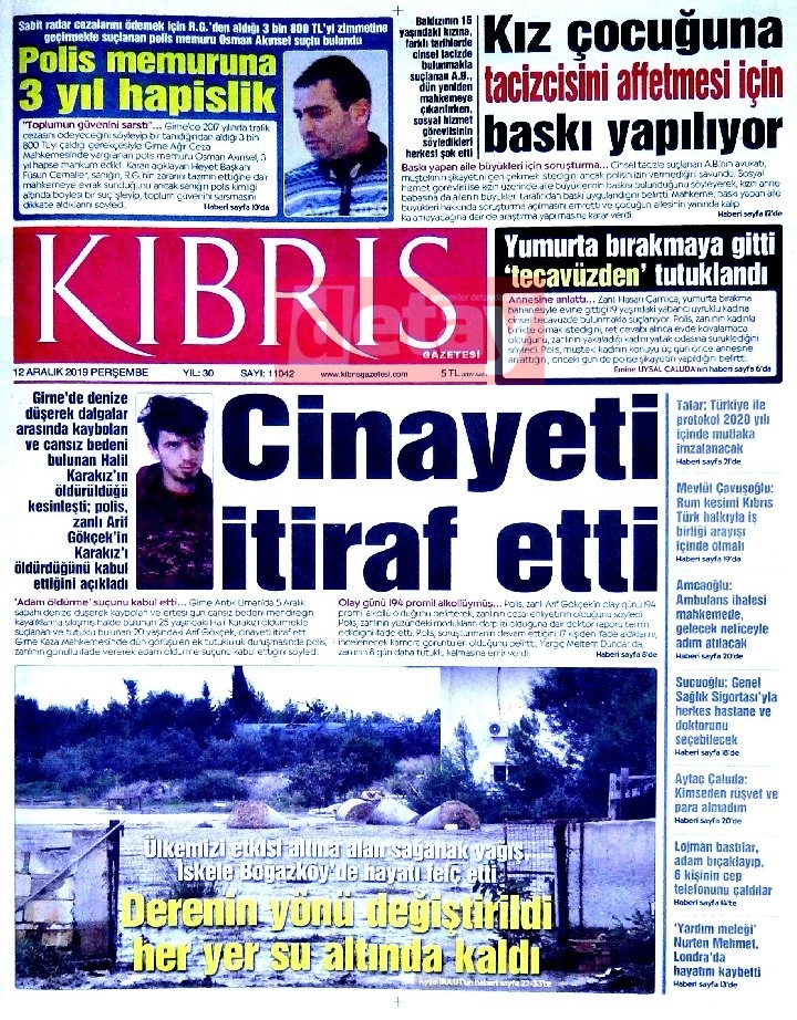 KKTC gazeteleri bugün ne yazdı (12 Aralık 2019)