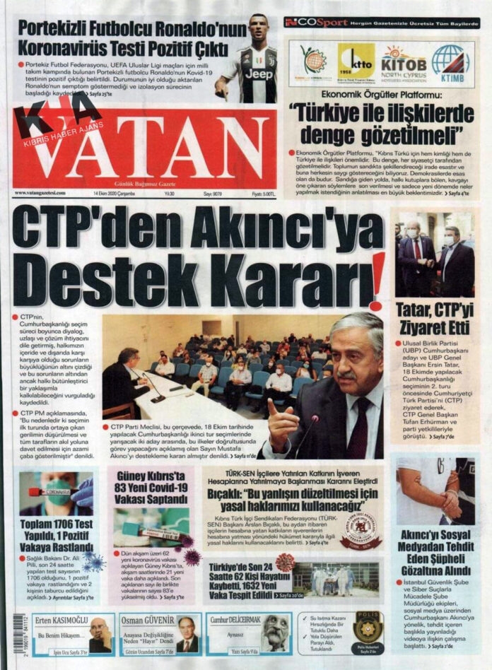 KKTC Gazeteleri Bugün Ne Yazdı? 14 Ekim 2020 Çarşamba