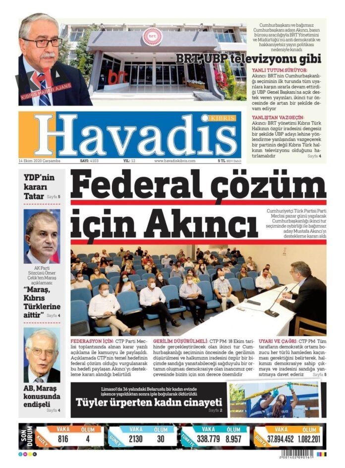 KKTC Gazeteleri Bugün Ne Yazdı? 14 Ekim 2020 Çarşamba