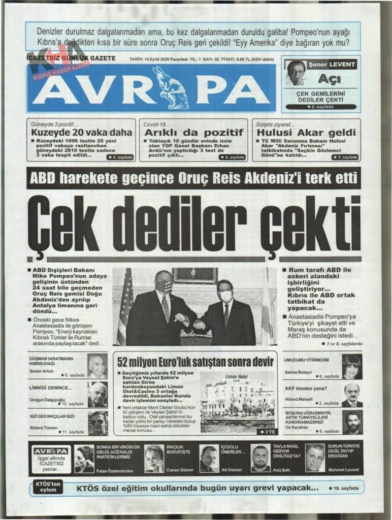 KKTC Gazeteleri bugün ne yazdı? 14 Eylül 2020 Pazartesi
